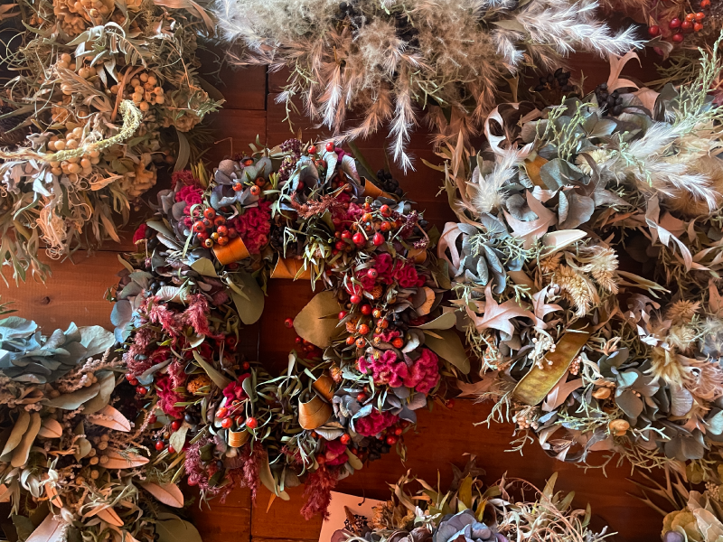 毎年11月恒例の葉菜屋綴り菜さんによるリースとお葉菜の販売。