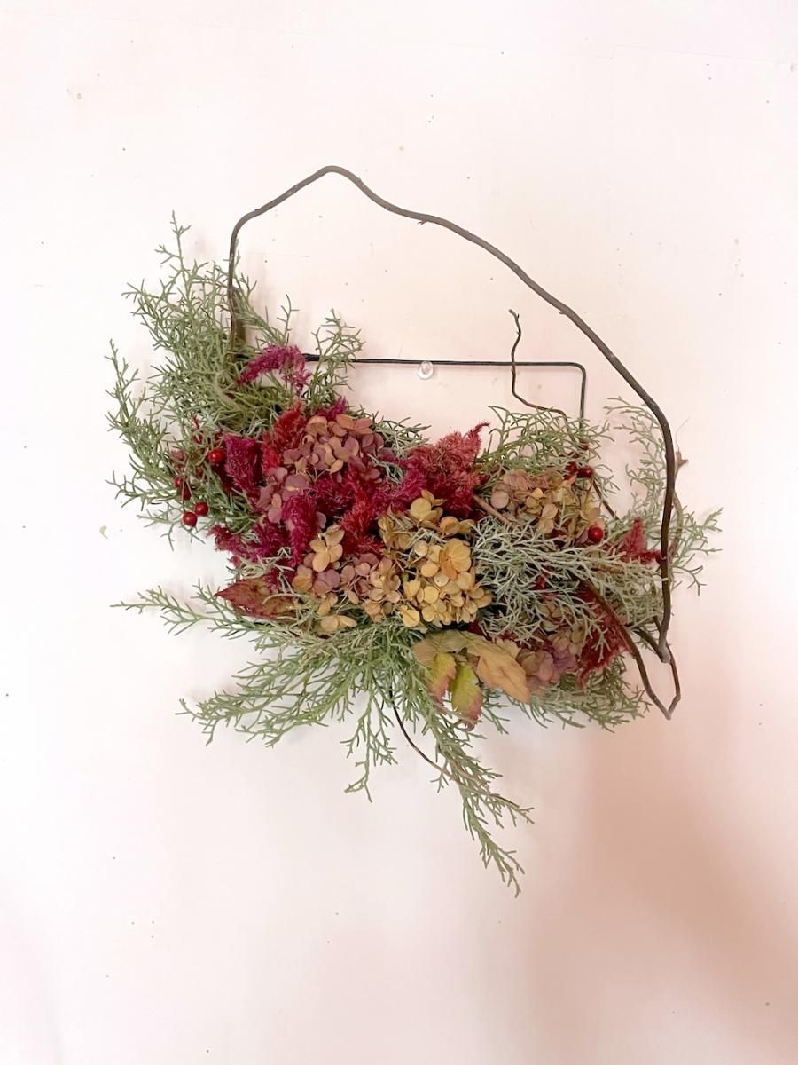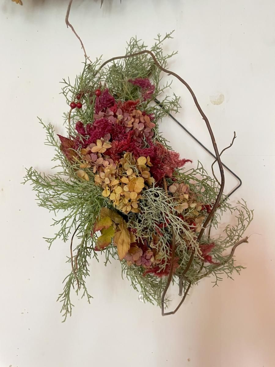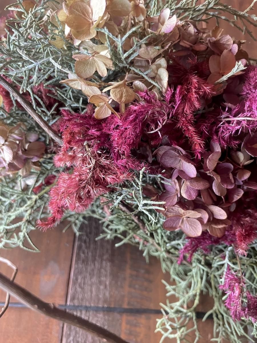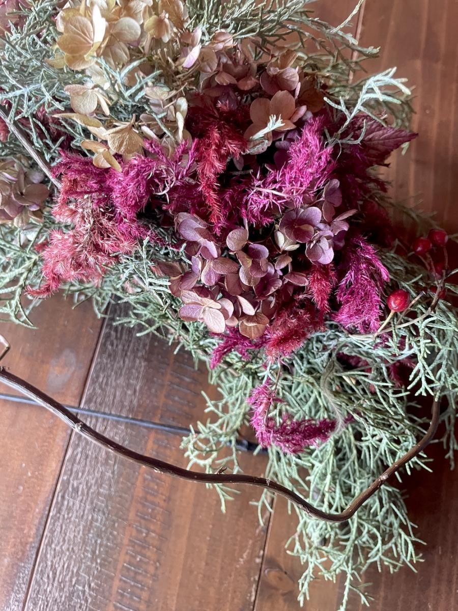 置く環境により同じ花材でも変化がそれぞれ異なり同じものが2つとないものになります。暮らしの中で自然のままにゆっくりと時間をかけて乾燥して、色や形の変化をたのしんでいただけたらと思います。日々、暮らしの中にある小さな事もしあわせだと思える事へと繋がりますように…