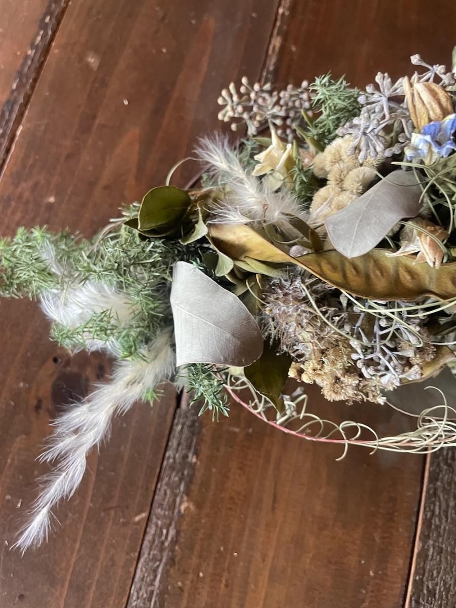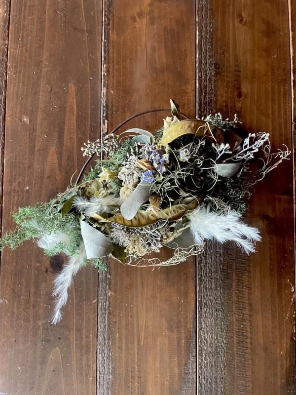 置く環境により同じ花材でも変化がそれぞれ異なり同じものが2つとないものになります。暮らしの中で自然のままにゆっくりと時間をかけて乾燥して、色や形の変化をたのしんでいただけたらと思います。日々、暮らしの中にある小さな事もしあわせだと思える事へと繋がりますように…