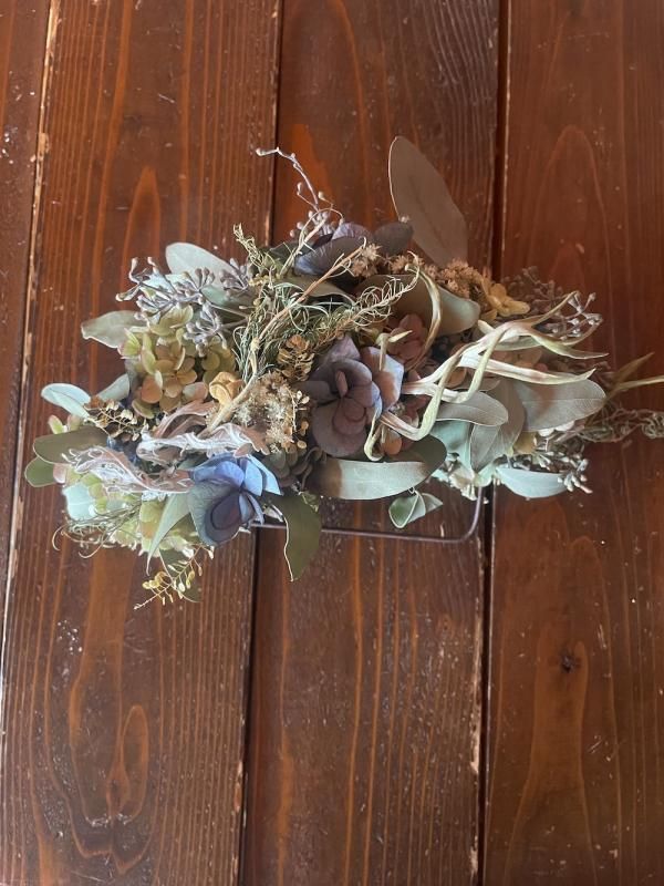 (花材:ユーカリ、オランダ産アジサイ、グレビレアなど