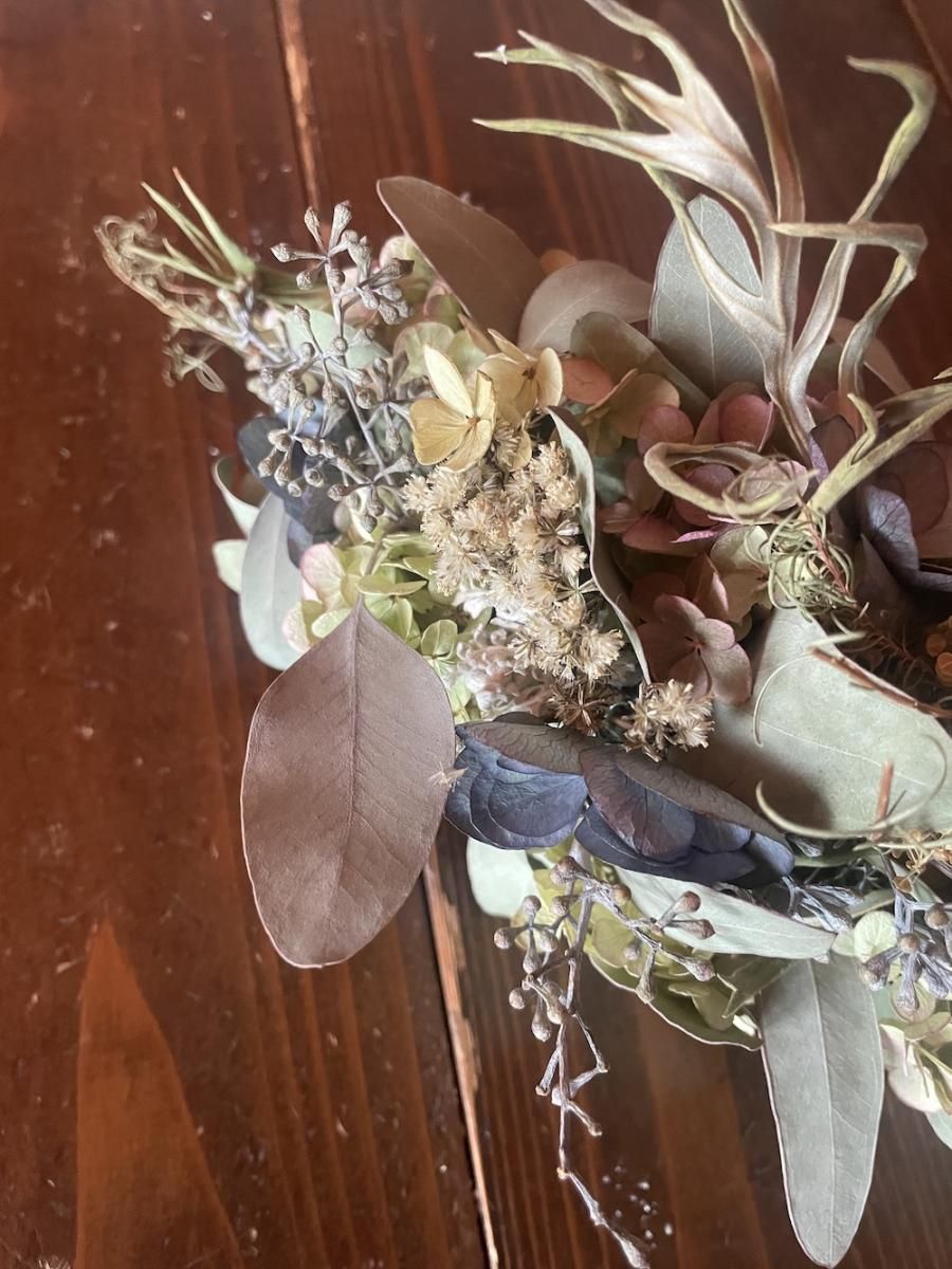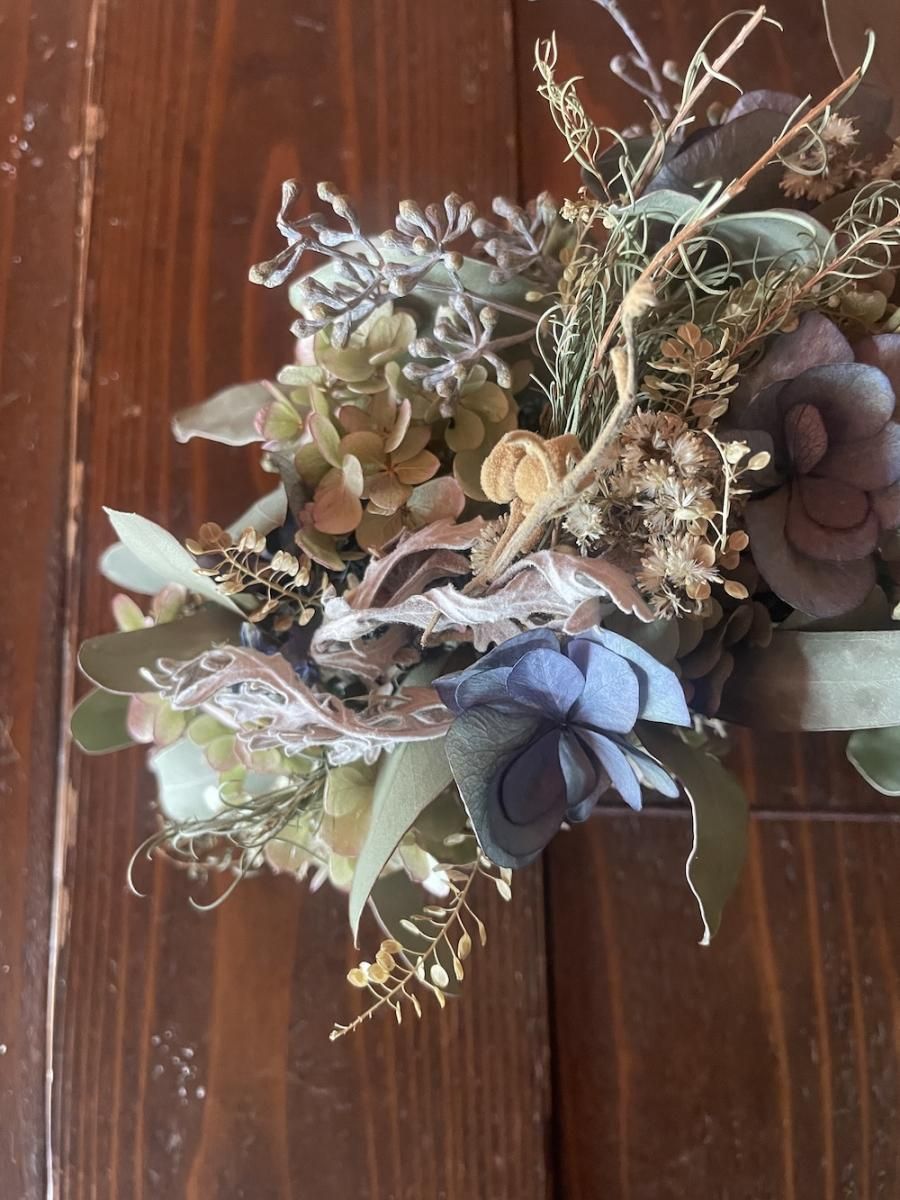 置く環境により同じ花材でも変化がそれぞれ異なり同じものが2つとないものになります。暮らしの中で自然のままにゆっくりと時間をかけて乾燥して、色や形の変化をたのしんでいただけたらと思います。日々、暮らしの中にある小さな事もしあわせだと思える事へと繋がりますように…